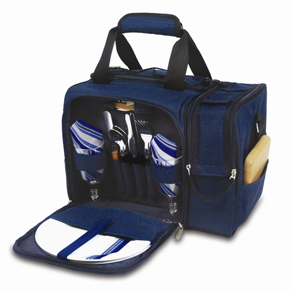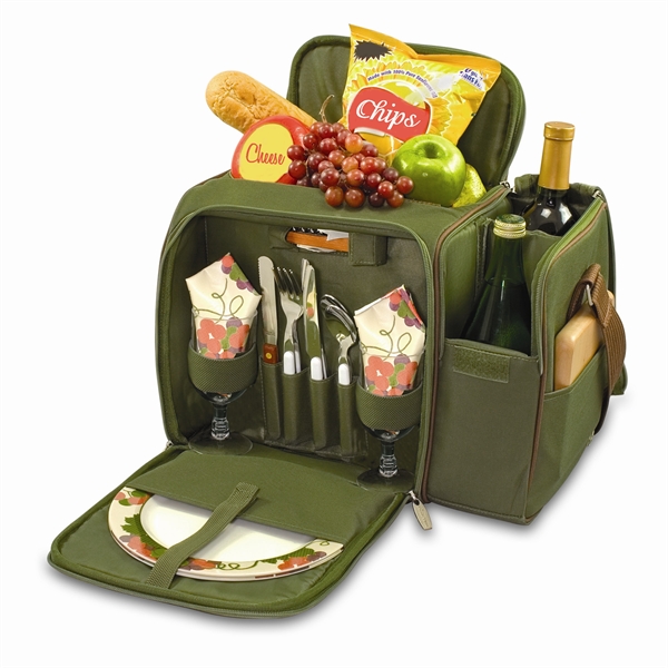 The Malibu is the most convenient go-anywhere picnic pack you can find. Fully insulated, it's made of 600D polyester and comes with deluxe picnic service for two. The Malibu features an insulated and divided wine section for two bottles and a removable water-resistant liner in the food storage area. The Malibu is great for the beach, concerts, and casual picnics.