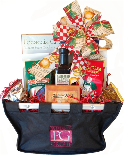Here are several baskets we designed for Preferred Group - They like us to build them in their own custom embroidered/handled bags.