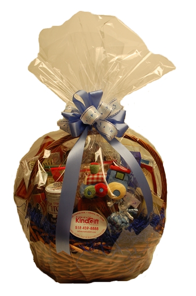 2 Gourmet Cheese Spreads, Summer Sausage, Crackers, 2 Coffees and 2 Biscotti (for all those late nights), a Tin of Pirouline Cookies, Mini Pillow Cookies, Pecan Almond Crunch, Dolcetto Wafer Cookies, Chocolate Nut Snack Mix, Chocolate Covered Cookies, Truffle Cookies, M & M's, Cocoa and a Toy.