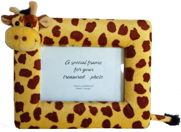 Adorable Plush Giraffe Picture Frame holds a 5" x 3.25" photograph.