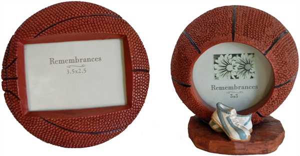 Two choices in Basketball Picture Frames. These measure approximately 5 x 5 and hold 3.5 x 2.5 pictures. Specify your preference in the comments section.