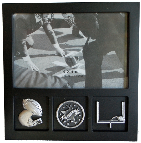 Outside dimensions of frame are 7" x 6.5" and it holds a 6" x 4" photo