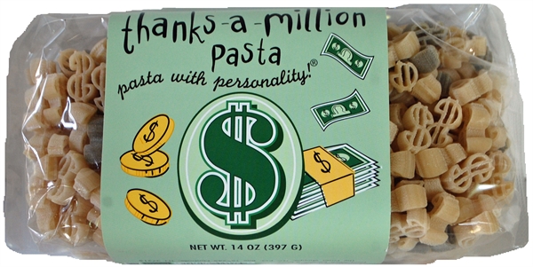 This Money shaped pasta can be added to any gift basket.