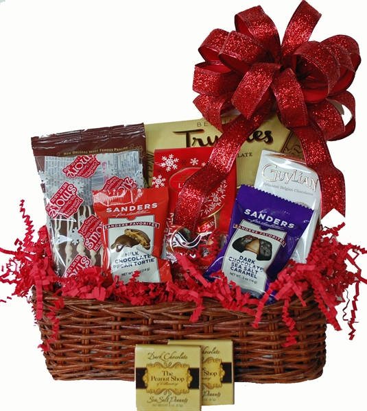 Here's a sweet little basket filled with a delicious assortment of Milk and Dark Chocolates. This gift will fill the bill for many occasions.