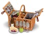 This deluxe handcrafted willow Dilworth 4 person Picnic Basket from Picnic Plus comes complete with a set of four: 7" ceramic plates, stainless steel flatware, wine glass drink ware, cotton napkins, a set of salt/pepper shakers, and a multi function waiter's tool. With the large, removable, thermal foil insulated cooler section, you can take-a-long plenty of food, cheese, sandwiches and snacks for a family picnic, concert or fireworks show, tailgating party, afternoon at the park, or just bring along some friends or another couple for an evening dinner under the stars. Center divided section can accommodate 3 bottles of your favorite vintage. Easy to carry with the ergonomically designed handle for equal weight throughout.