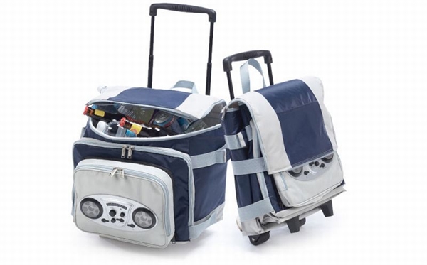 Wherever you go, the beverages and tunes come along for the ride when they"re in the Picnic Plus Cooladio Radio Cart. Featuring an AM/FM radio and dual speakers, that also plays your iPod ® , MP3 or CD player with the included input cables. The large insulated cooler with a 60 can capacity, this Picnic Plus Radio Cart keeps your food and drinks cool and your music hot. Great for beach, camping and boating trips, the Cooladio Cart collapses flat for convenient storage! With a retractable handle and rugged wheels - ideal for when you"re on the go!