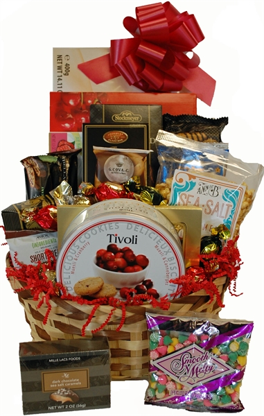 Send your Valentine this beautiful basket packed with Smooth & Melty Mints, Caramels, Biscuits, Sea Salt Caramel Popcorn, Haviland Mints, Chocolate Dipped Shortbread Cookies, three different boxes of Chocolates, two different boxes of Cookies, boxed and individual Truffles, Coffee, Tea and Biscotti.
