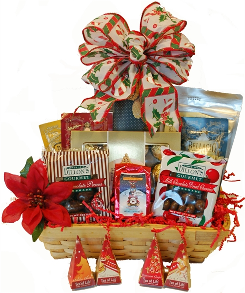 Send your warmest holiday wishes with this basket of Gourmet Coffees, Cookies, Teas and Chocolate Covered Goodies.